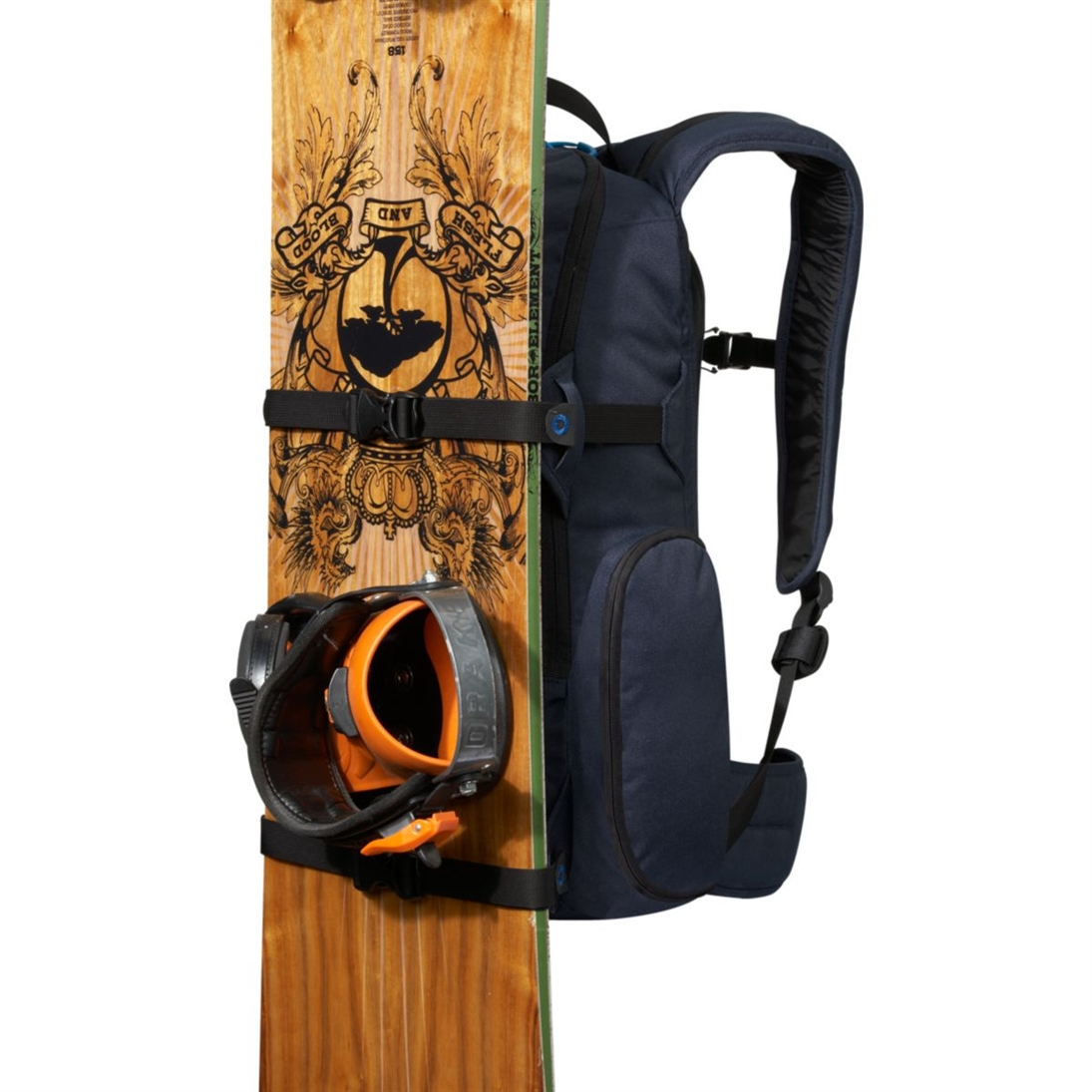 Designed to carry: skis/snowboard, shovel, probe, skins or snowshoes, goggles, extra layer, snack, phone, wallet, keys